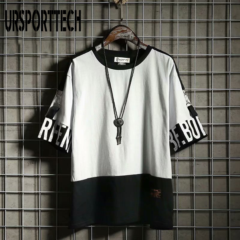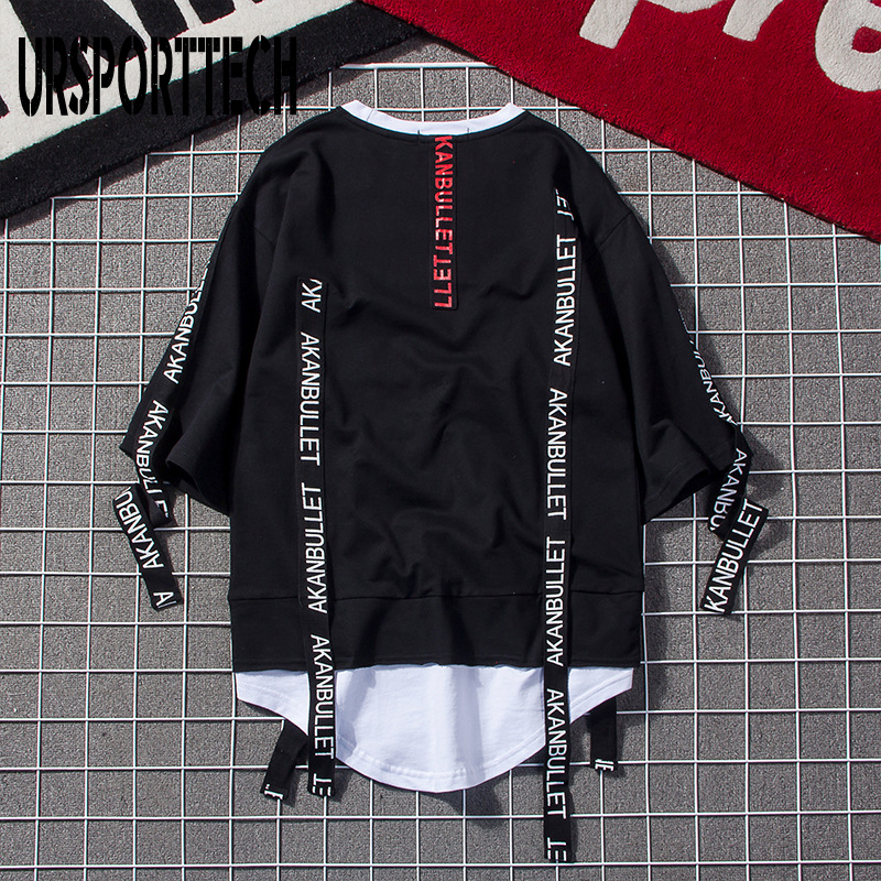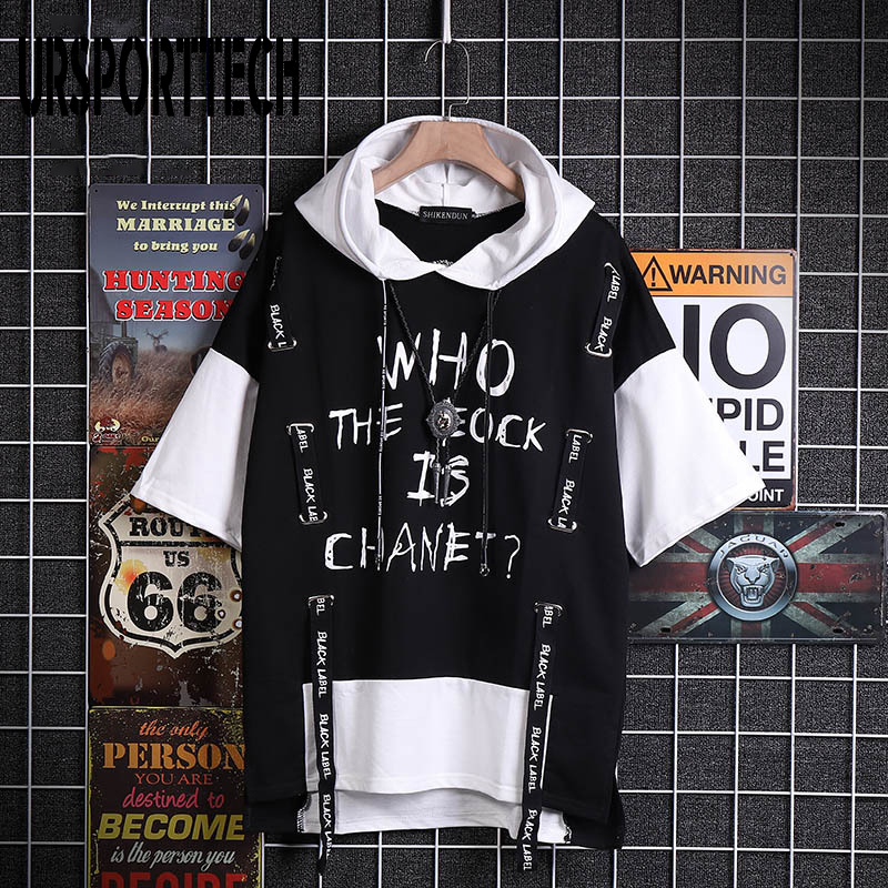 Japanese Style Oversized Harajuku Patchwork Hoodies Men Letters Printed Short Sleeve Hip Hop Hoodie Summer Black Hoody For Men